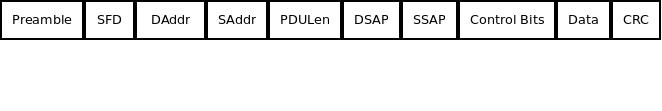 The ARP frame is just a special case of the MAC frame, replacing everything the DSAP, SSAP, control bits, and data with the ARP message shown above. The resulting ARP frame looks something like this: