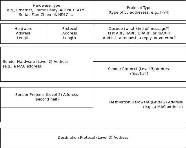 ARP sends a broadcast request to everything on the relevant subnet. This request looks like the ARP message above, but it's encoded as a MAC frame, which helps to answer the often-fuzzy question, "Is ARP Layer 2 or Layer 3?" As you see, this is an L2 message. Incidentally, ARP only works as a broadcast, by the way; that is, it only works on a broadcast network.