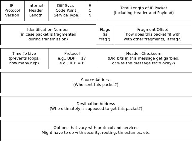As you can see from the bytes above, TCP is all about the state of a connection, which is basically the same as a phone call. When you pick up the receiver, you and the caller exchange information. You say "bye" when the call is over. If it's a bad connection or one end suddenly gets noisy (think jack-hammers outside), one of you can reset the connection by saying, "Let me call you back in a minute." Take a minute and try to see how the other header bytes fit this analogy.