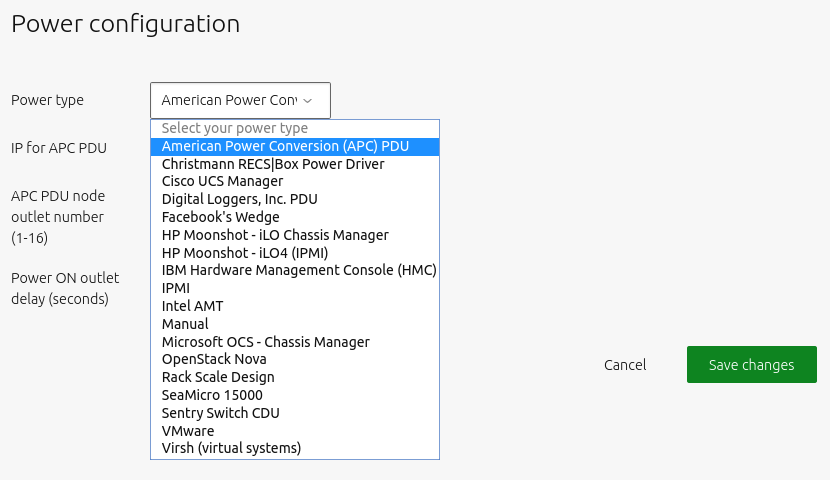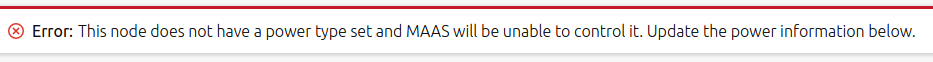 To manage a machine, MAAS must be able to power cycle it, usually through the machine's BMC^ card. Until you configure the power type, a newly-added machine can't be enlisted and used by MAAS.