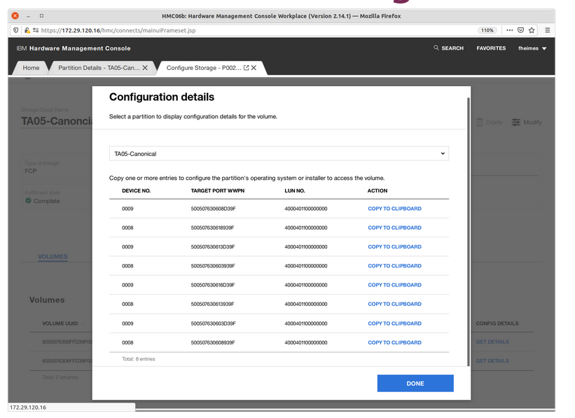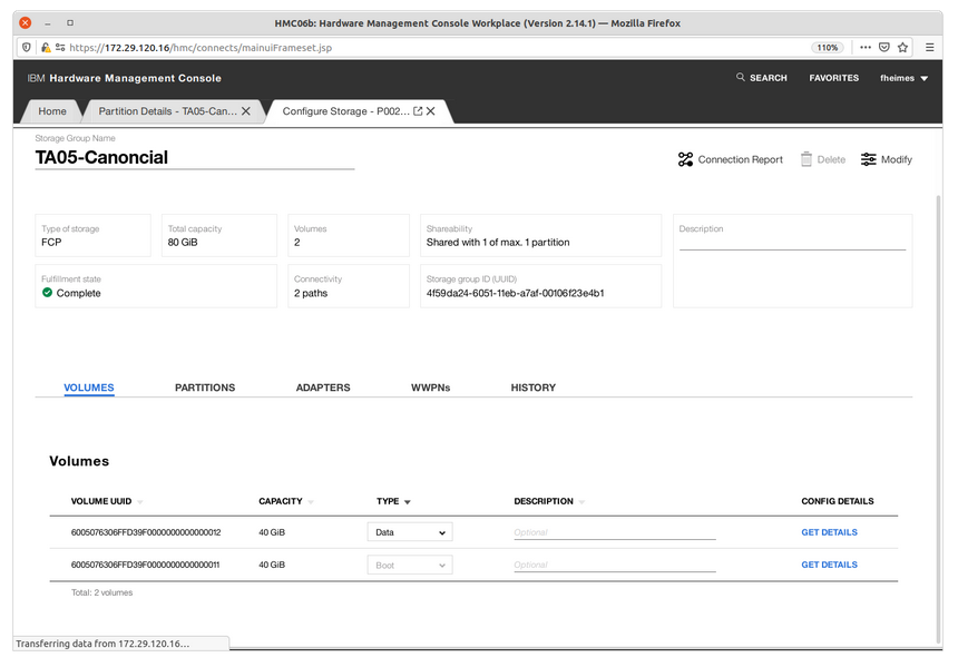 Click on “GET DETAILS” for the Boot Volume in the Volume list to bring up the “Configuration details” screen: