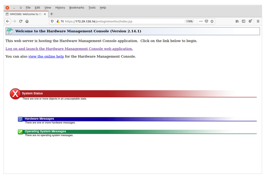 To login to the HMC, you must have at least “system programmer” privileges. Gaining that level of access is beyond the scope of this document. Once you are sure that you have the necessary access, you first need to navigate to the Hardware Management Console (HMC) application in your Web browser: