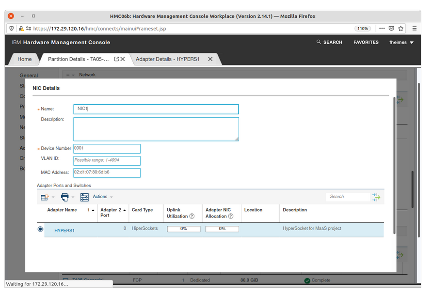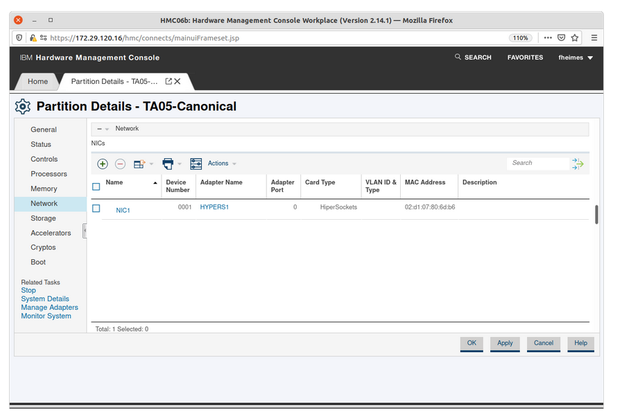 To properly enable networking within the IBMZ partitions, you must change to the “Network” tab under “Partition Details:”